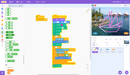 一筆書きのプログラムはScratch(スクラッチ)で作っておりますので、小学生でも作れないことはありません。自分で作ることで必然的に仕組みを理解します。ここで面白いのが、実はこのプログラムを作ったところで