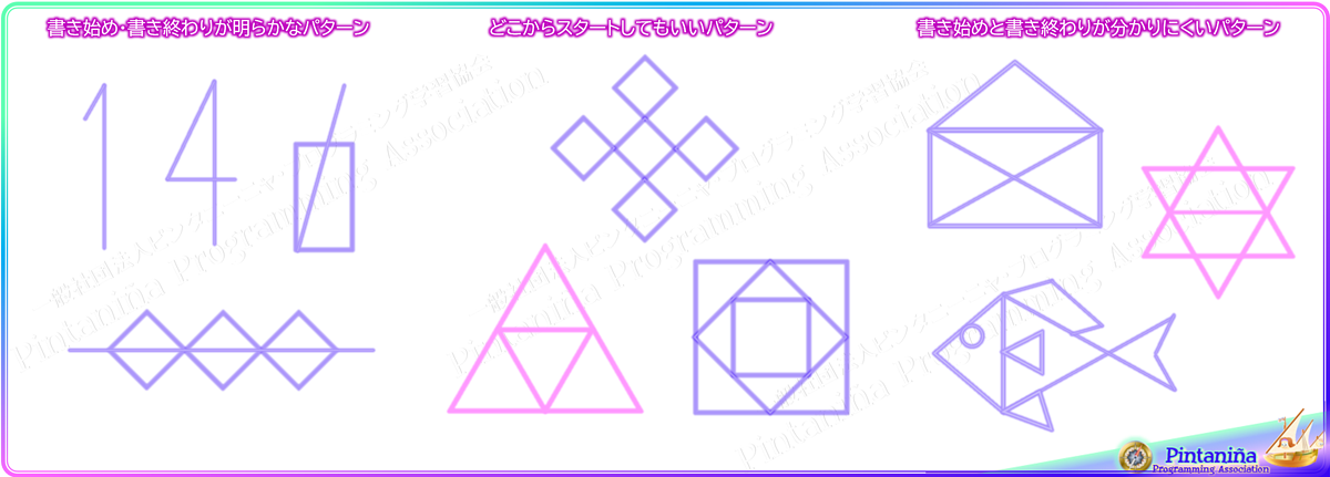 これが基本ですね。これ以外に、『絶対書けない図形』もありますが、今回は一筆書きができるものの分類です。