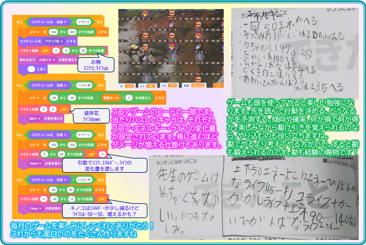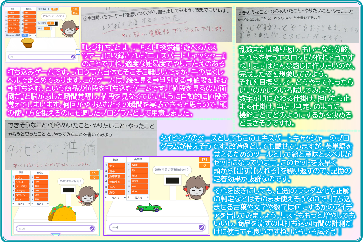ゼロからアイデアを出し何かを作るのはナカナカ大変です。でもこれもパターンと慣れで強化することができます。まずは改造、仕掛けには手を加えずにコンテンツを置き換えてみる。絵やデータを変えるだけでもかなり変わります。次に仕掛けに手を加える。失敗を恐れずいろいろ試してみよう!