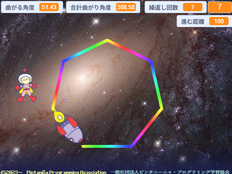 沼津市立千本小で『正多角形を描く』方法を当協会オリジナル『自動航行ロケット』プログラムを使って指導。