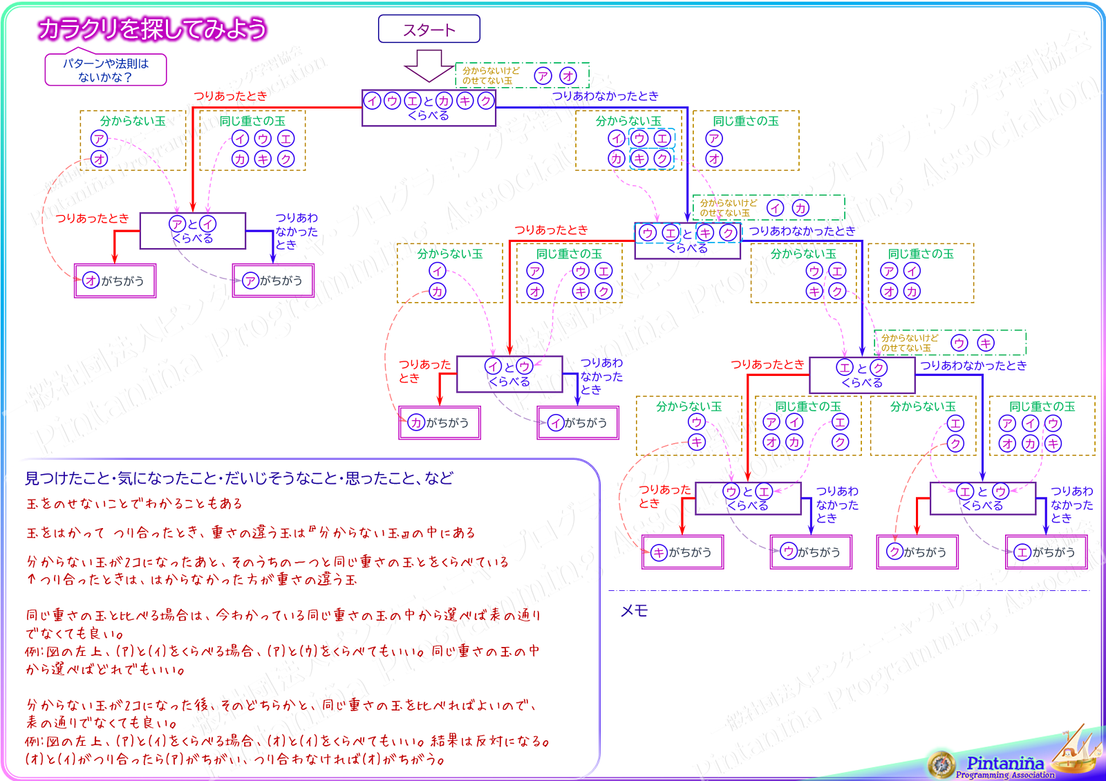 今回もオリジナルの天秤ばかりのプログラムを使ってリアルタイムでその都度考えながら解いていくようにしました。