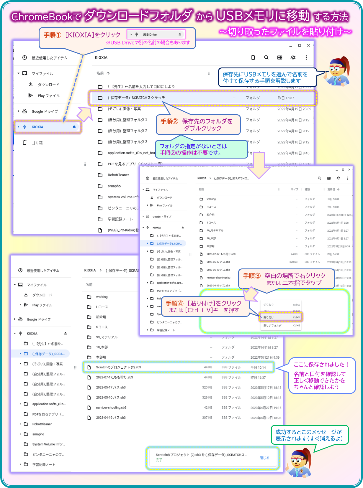 4.ダウンロードフォルダからUSBメモリに移動しよう ~ファイルの貼り付け~