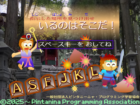 【小学1年生向け】 高天原でイタズラばかりのスサノオ、どこかに逃げ隠れたよ!どこから何番目の指示を読み解き、隠れ場所をキータイプで見つけ出そう!