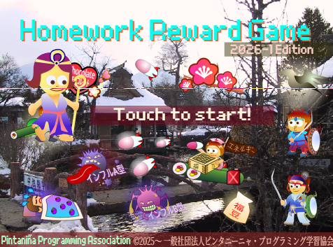 宿題スコアご褒美ゲーム1月結果版の体験版を用意しました。スマホでも一応遊べるタッチ仕様にしてあります、プレイヤーはゲスト固定です。