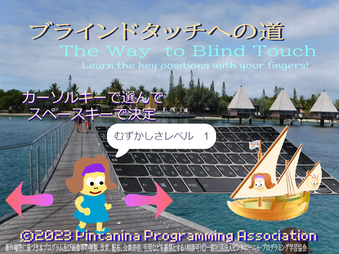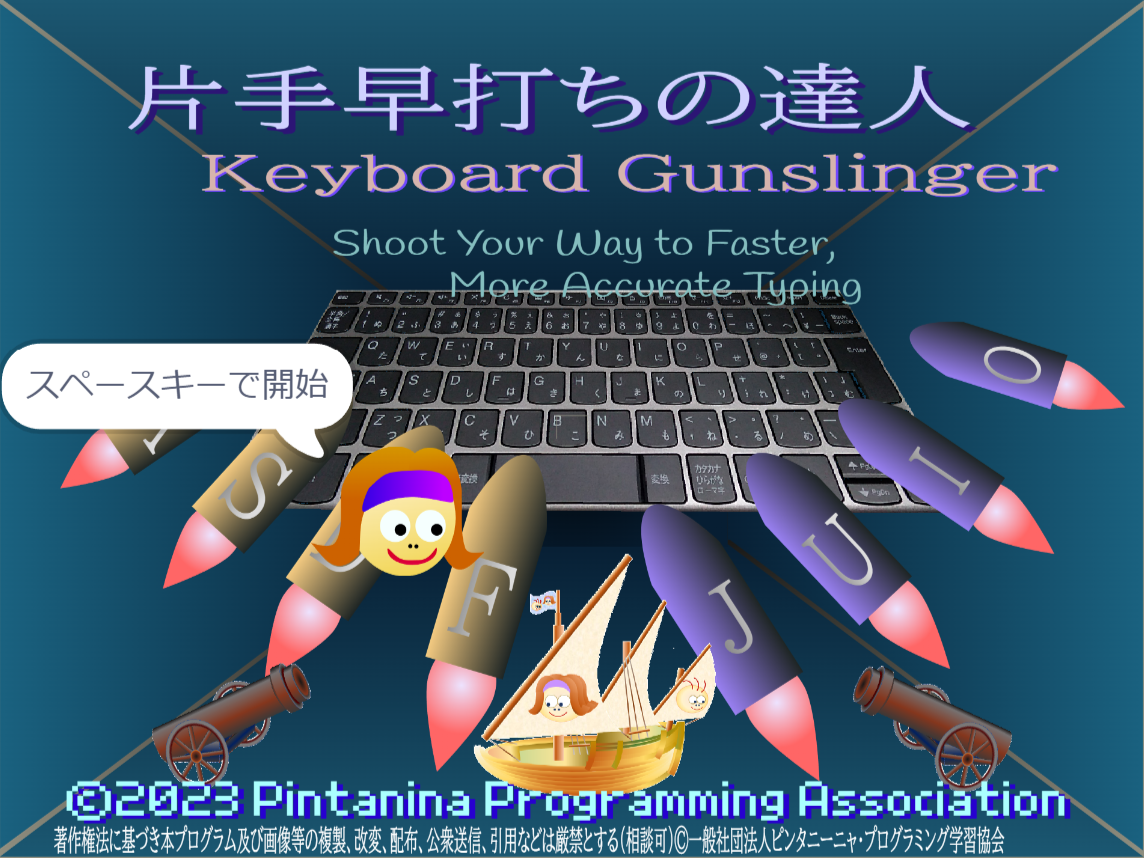 押してと指示されたキーを素早く押す、これをひたすら繰り返すゲームです。キーは見ないで押そう。まずはFJAIUEOの7つのキーを見ないで押せるようになろう!
